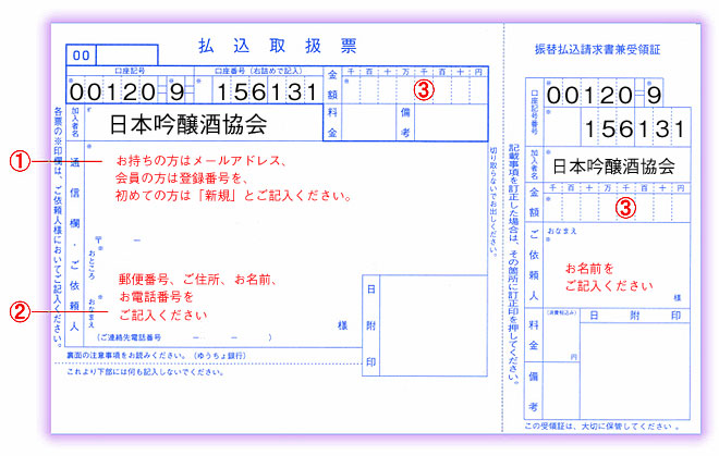 イベント情報 > 2019「吟醸酒を味わう会in札幌」へのお誘い > 払込用紙記入例